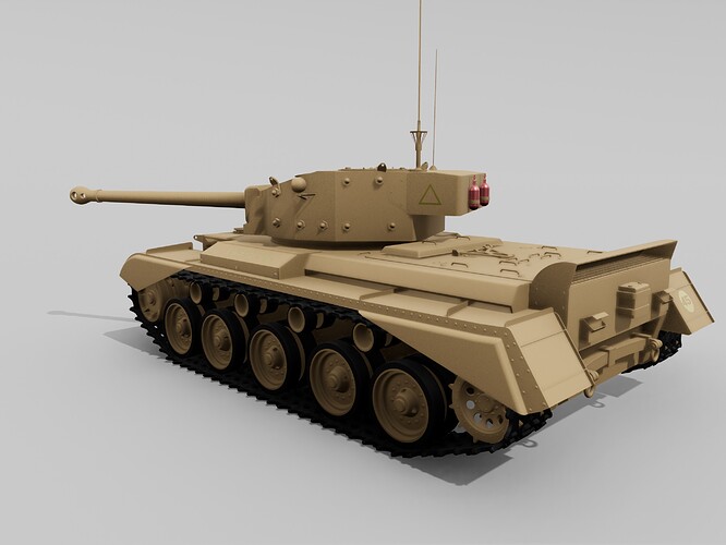 The Comet tank or Tank, Cruiser, Comet I (A34)was a British cruiser tank that first saw use near the end of World War II during the Invasion of Germany. The Comet was developed from the earlier Cromwell tank and mounted the new 17 pdr High Velocity (HV) (3 inch; 76.2 mm – sometimes referred to as “77 mm”) gun, in a lower profile, partly-cast turret. This gun was effective against late-war German tanks, including the Panther at medium range, and the Tiger.