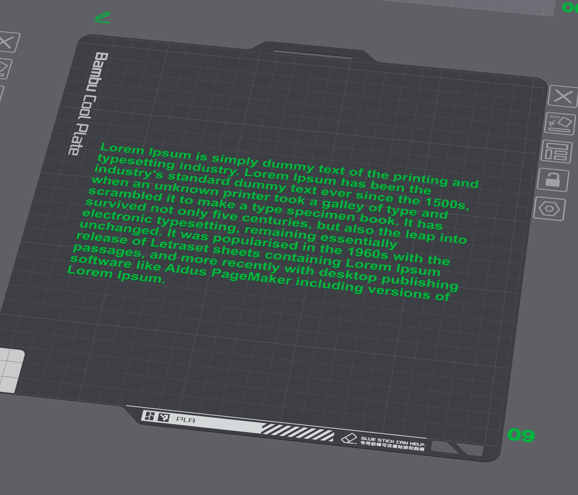 No need for complex selection process within Shapr, within the slicer SVG text can be merged onto a flat surface.