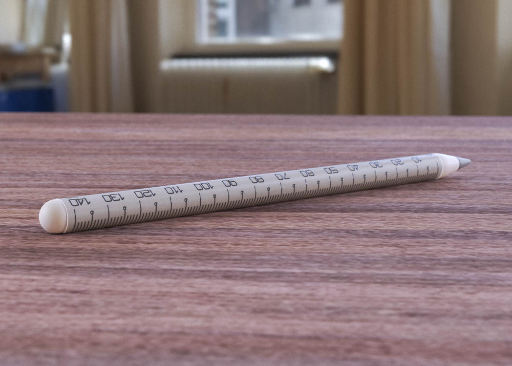 Thank you! That’s interesting, I thought of that too, originally I wanted the markings to be on the flat edge, but with it on the curved edge of the pencil you can use the pencil as a flat edge when drawing on paper and still have the lines of the ruler actually visible and touching the paper. If the ruler markings are on the flat edge, they would be far away from the paper and then you can’t use that flat edge of the Pencil to draw a straight line, something I do quite frequently (hopefully that made sense).